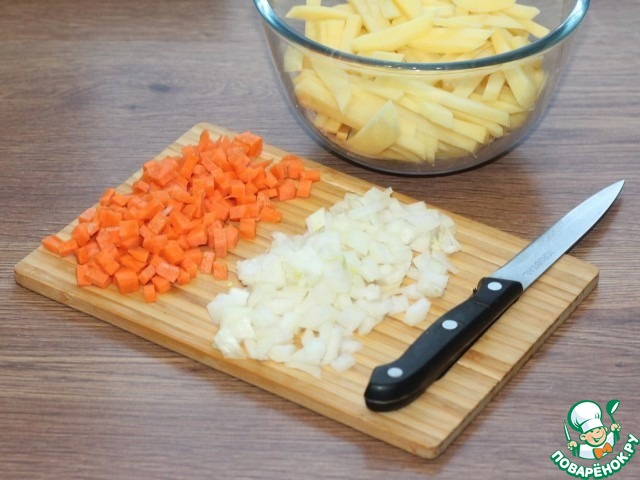 Оставшуюся пряную жидкость от сырого картофеля (из миски) не выливать. -