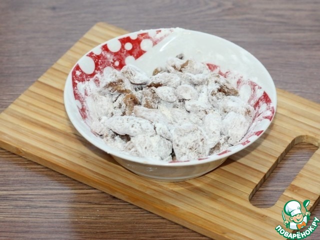 8. Жарить филе на хорошо разогретом масле до румяной корочки. Готовое филе выложить в миску.