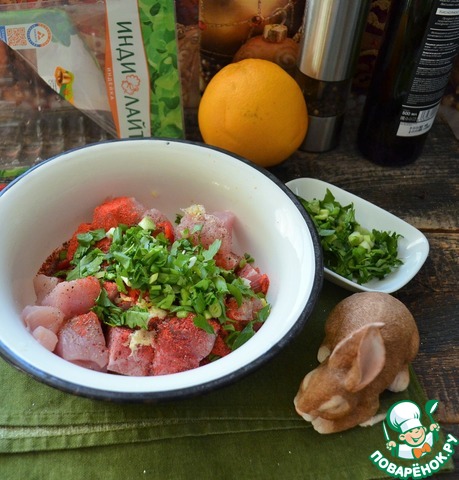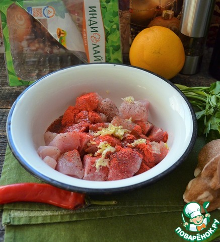 Рецепт «Индейка-ассорти с апельсином и чесноком»: