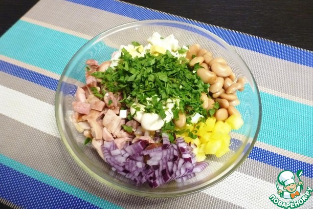 Рецепт: Салат с ананасом, индейкой и фасолью