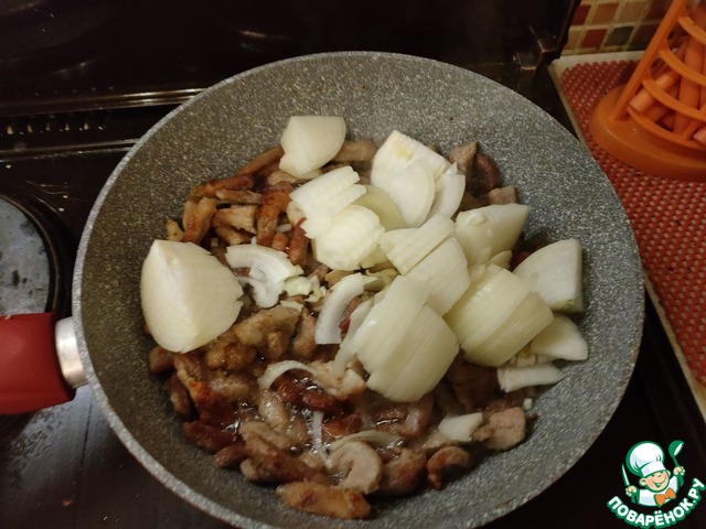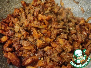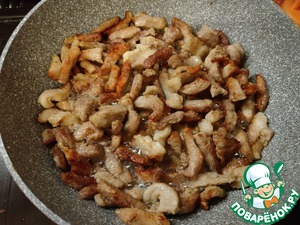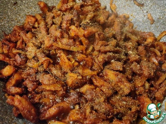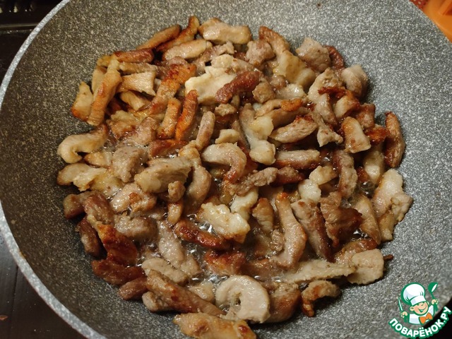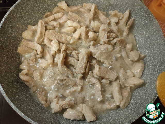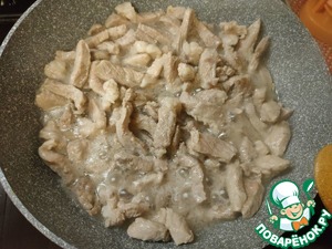 В процессе жарки мясо будет выделять много сока, ждём пока он испарится