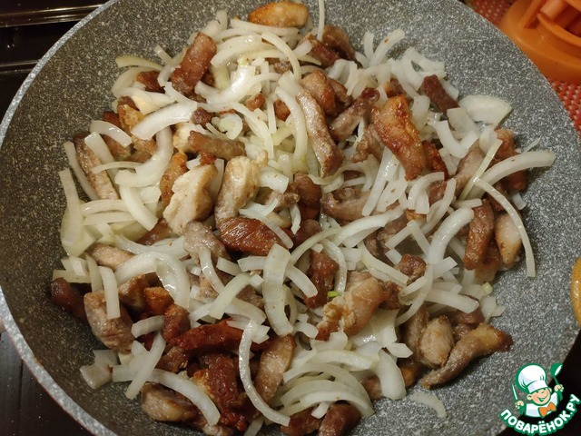 Жарим до полной готовности лука, он станет мягким и прозрачным