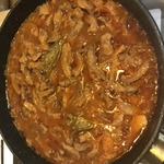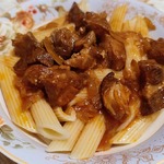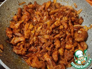 Ниже в комментариях, кстати, вообще посоветовали сдвинуть мясо в сторонку, и обжарить только пасту, а потом уже перемешивать.