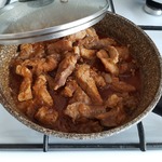 Сегодня решил приготовить дома поджарку из свинины - очень вкусное блюдо, которое было и остаётся популярным во всех столовых, как в советское время, так и в наши дни. А всё потому, что оно прекрасно сочетается практически с любым гарниром, будь то гречка, рис, макароны или картофельное пюре. Те, кто ел данное блюдо в столовых, наверняка обращали внимание на тёмно-красный цвет подливы у мяса. Это связано с тем, что при приготовлении в обязательном порядке использовалась томатная паста. К моему удивлению, на Поварёнке рецепта, подобного моему, не оказалось! Да, есть похожие, но в них либо томатную пасту не используют вообще, либо добавляют ингредиенты и приправы (к примеру - соевый соус, сладкий перец, мёд, чеснок, грибы и проч.), которые никогда в столовых и близко не использовали! Поэтому я и решил опубликовать свой очень простой рецепт, в названии которого акцентировал присутствие именно этого ингредиента - томатной пасты. Остальные продукты все самые обыкновенные: мясо, лук, соль, перец и вода.
