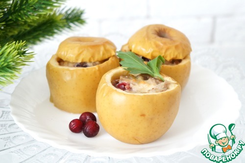 На Рождество популярна индейка с фруктами. Почему бы не сделать наоборот? Приготовьте на праздничный стол яблоки, фаршированные сочным филе индейки с орехами, клюквой и сыром!