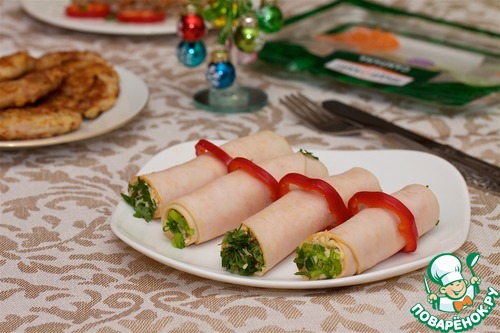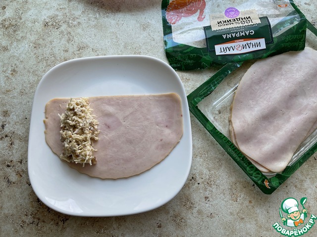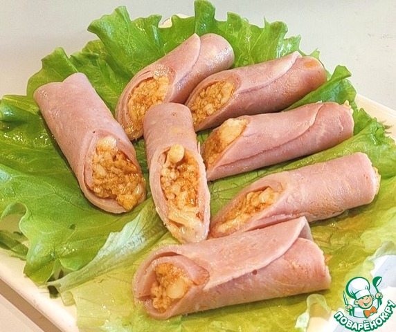 Рецепт «Рулетики из ветчины с сыром и орехами»: