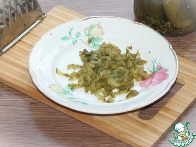• 1. Готовим паштет. Трем огурец на крупной терке.
