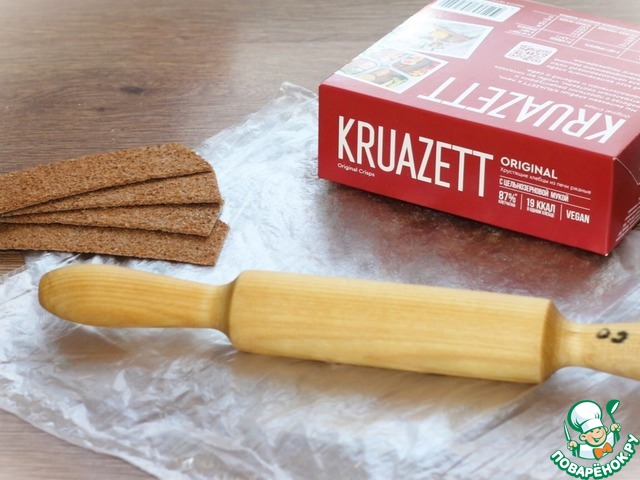 • 6. Хлебцы (2-3 шт) кладем в пакет и измельчаем скалкой.