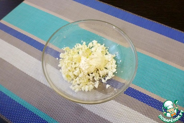 Яйцо размять вилкой, смешать с измельченным чесноком и майонезом.