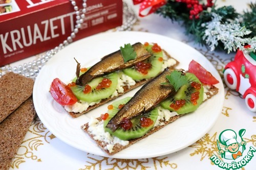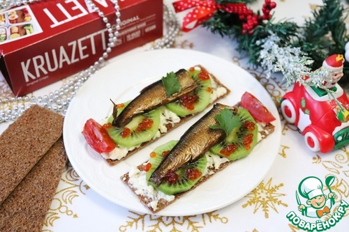 Хрустящие хлебцы со шпротами и киви
