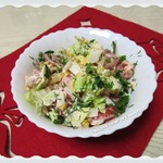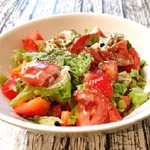 Отправляем овощи в миску, добавляем листья салата и хорошенько все перемешиваем.