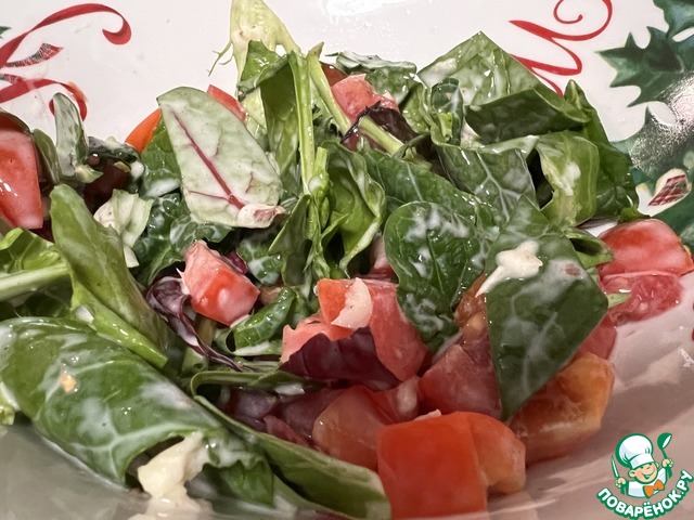 Добавляем оливковое масло, хорошенько все перемешиваем и оставляем на пару минут настаиваться.