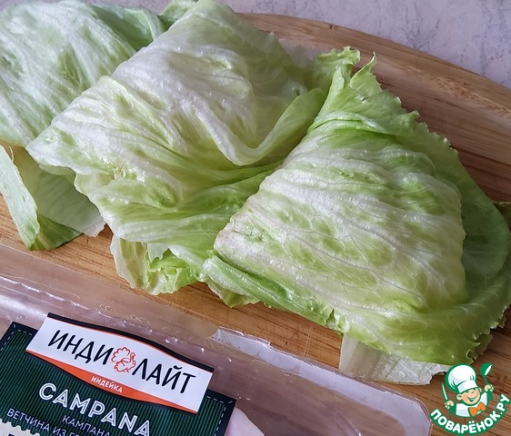 - Листья салата / Салат (Айсберг или любой другой с относительно крупными листьями) — 3 шт