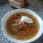 Суп получился довольно густой и в меру солёный с выраженной кислинкой, поэтому лимон я решил не добавлять.