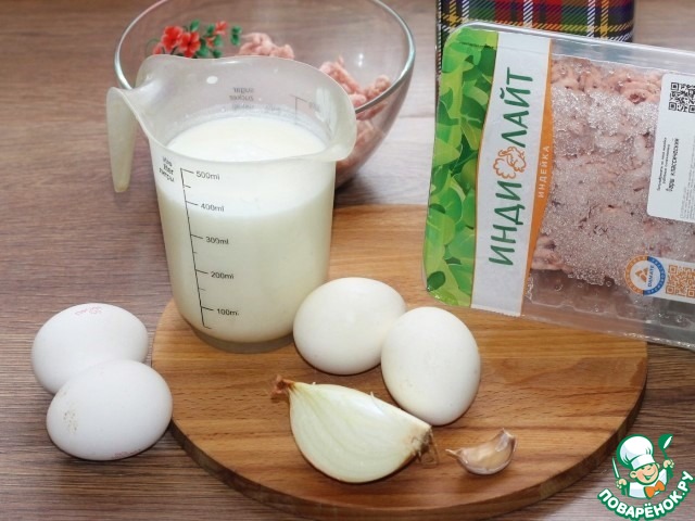 Ингредиенты для «Ленивые пирожки с фаршем индейки»: