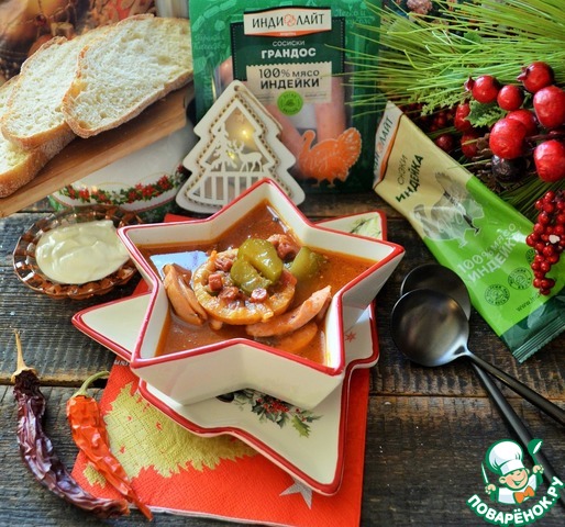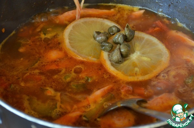 Не знаю как у кого, у меня солянка это блюдо - ревизия, особенно после шумных застолий, продолжительных праздников. Но тем не менее, это всегда вкусно, сытно, "с огоньком". Спросите у своих гостей "Будем солянку?!" и в ответ услышите дружное "Бум! БУМ!, конечно бум!" Сегодня, например, это солянка с продуктами от ТМ Индилайт, ещё я использую помидоры и лимон из заморозки, это выручает. Рекомендую.