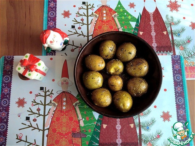 Пока стояли в холодильнике фрикадельки, я запекла беби-картофель в духовке. Картофель нужно хорошо помыть. Я всегда мою его металлической губкой, так как я его буду запекать в кожице. Удаляем ножиком точки тёмные. Обсушиваем бумажным полотенцем. Выкладываем в форму для запекания. Присыпаем специями всеми, солим, наливаем оливковое масло и ложкой перемешиваем, чтобы картофель весь обмазался маслом и специями. Ставим в духовку на 30 минут при т-180 С. Проверяем шпажкой деревянной. Мне этого времени хватает. Ориентируйтесь на свою духовку.