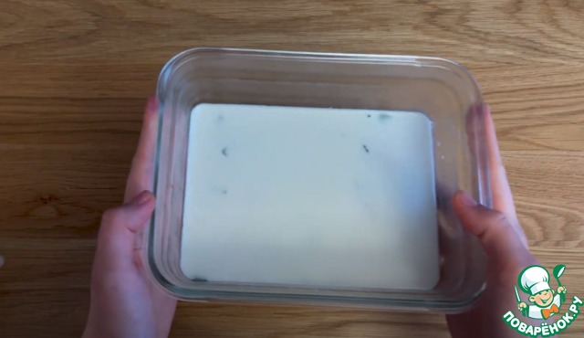 В любую форму залить первый тонкий прозрачный слой. После заливки каждого слоя необходимо ставить форму в холодильник для застывания, примерно на час.