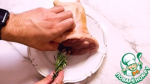 Вкусная свиная рулька с ароматными травами томленая в пиве