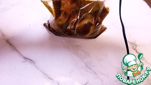 Вливаем соевый соус, пиво, выкачиваем воздух и отправляем в духовой шкаф при 60 градусах на 3 часа.