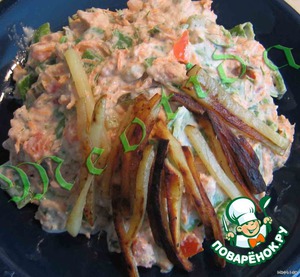 «Мне с милым рай и в шалаше Я каждой радуюсь минутке Я собираю незабудки Почитываю Бомарше…» …и все же милые и любимые мои поварята.. от ВСЕЙ ДУШИ желаю Вам, чтобы Вы строили свой рай в крепком и уютном замке:).. чтобы «лодка любви не разбилась о быт»…а шалаш бы только в виде такого вкусного.. сочного.. легкого и нежного салатика из жареной картошечки, свежего помидорчика.. соленого огурчика.. зелененькой фасольки.. горбуши….. Ваши любимые останутся сыты.. довольны и превратятся в мурлыкающих котиков:)