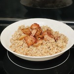 Ингредиенты. Масло для обжарки рекомендую использовать оливковое, но можно и подсолнечное. Бекон у меня из индейки. Сыр желательно пармезан, но можно и любой твёрдый. Ингредиентов я указала на две обычные порции либо на одну большую. Увеличивайте при необходимости кратно нужному количеству. Ориентируйтесь на количество крупы.