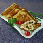 Яйца слегка взбить. Обмакнуть наш треугольник со всех сторон.