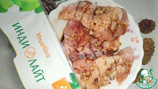Вся фишка в соусе - именно он позволяет сотворить чудеса с Рождественской индейкой! Гвоздь этого блюда - варенье из сосновых шишек. После жарки остается самые легкие хвойные нотки, не забивающий основной вкус блюда. Компания ИндиЛайт облегчает всю подготовительную работу хозяюшкам, предоставив большой выбор продукции - крылья, мякоть грудки или бедра - кто что больше любит. Я предпочитаю крылышки на сковороде-гриль.