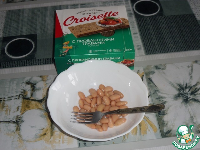 Консервированную фасоль выкладываем в миску и разминаем вилкой.
