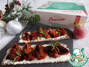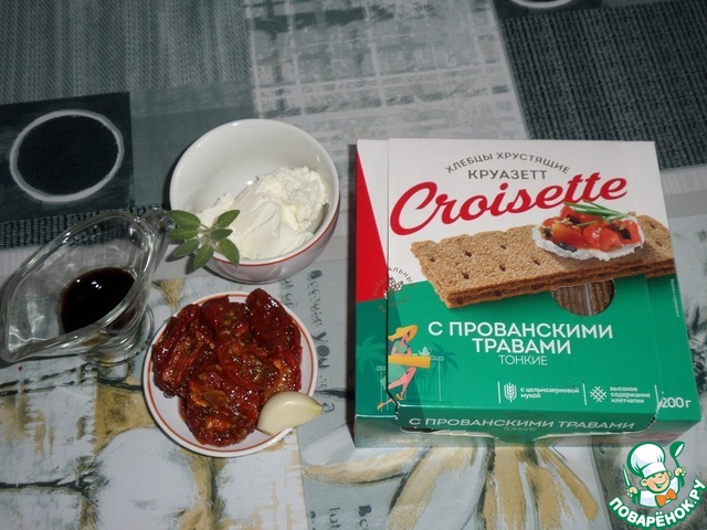 Добавляем зелень и бальзамический соус и подаем хлебцы к столу.