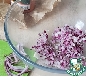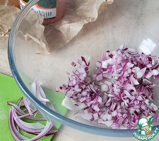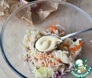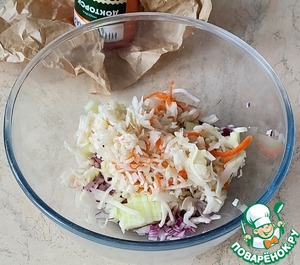 Капусту слегка отжать от рассола и порезать крупные кусочки.