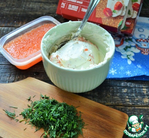 Ингредиенты для «Сырный крем с форелью и икрой»: