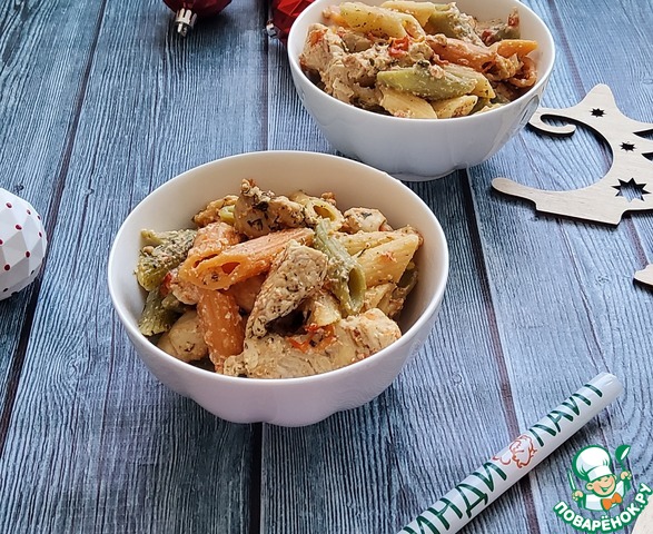 Индейка в сливках с макаронами