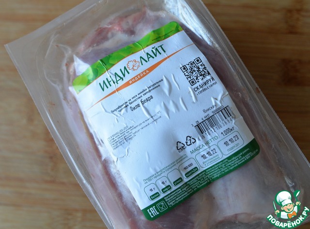 Для приготовления можно брать, как готовый фарш из индейки, так и филе. У меня - филе бедра "Индилайт".