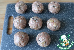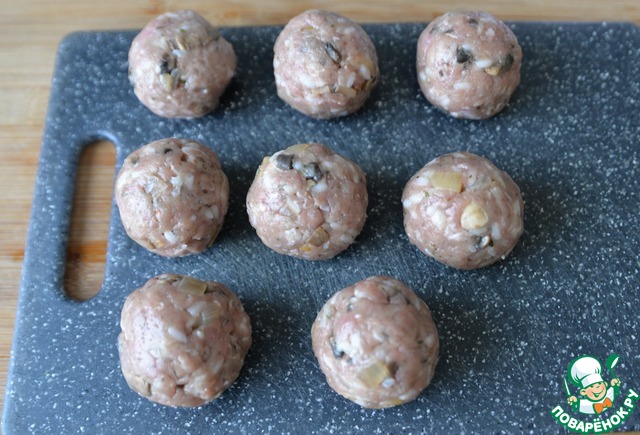 Делаем из фарша небольшие тефтели. Это удобно делать мокрыми руками.