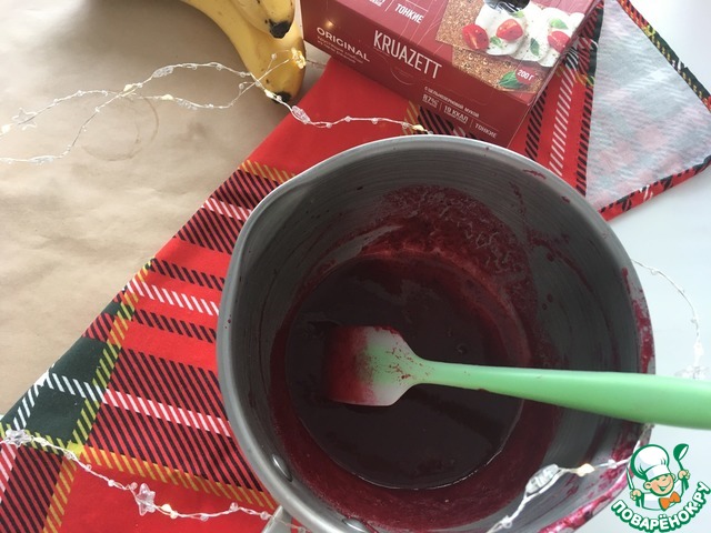 Замочите оставшиеся 10 г. желатина в холодной воде, согласно инструкции на упаковке. Ягоды промойте, положите в сотейник, добавьте 20 г. сахара и прогрейте (проварите) до растворения сахара. Протрите получившуюся смесь через сито. В еще горячую ягодную смесь добавьте отжатый желатин, хорошо перемешайте до растворения желатина (НЕ КИПЯТИТЬ!) и пробейте погружным блендером до однородности