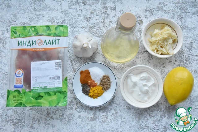 Ингредиенты для «Шашлычки из индейки тикка масала»: