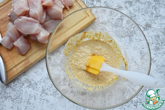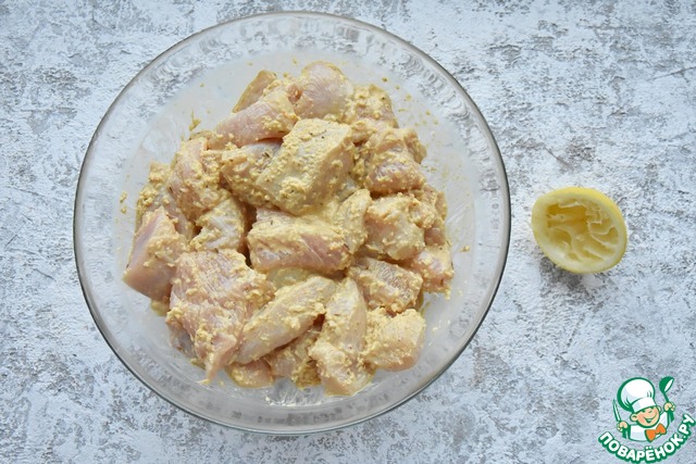 Готовлю продукты для приготовления шашлычков из идейки тикка масала.