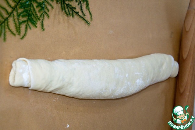 Свернуть жгутом, начинкой вверх.