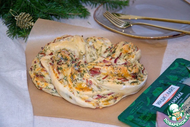 Какой же новогодний стол без хлеба и выпечки? Предлагаю приготовить хлебушек с ветчиной, сыром и укропом, в виде Рождественского венка. Ароматный, мягкий и очень вкусный! Ветчину удобно использовать в нарезке ТМ Индилайт.
