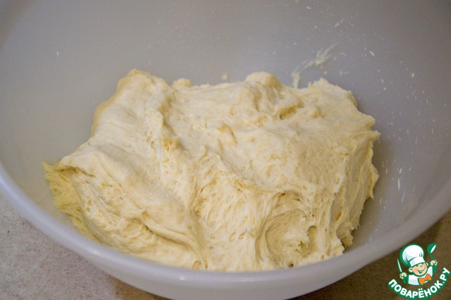 Для начала замесить тесто. В теплое молоко добавить просеянную муку, сахар, соль, 1 ложку оливкового масла и дрожжи.