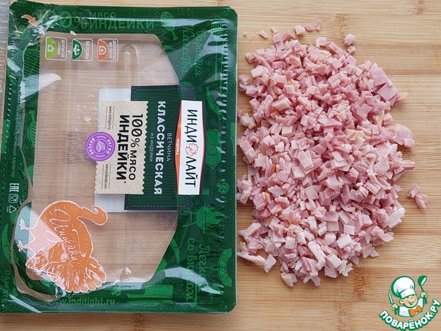Ветчину ТМ "Индилайт" нарезать мелкими кубиками.