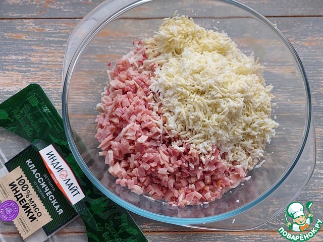 Ингредиенты для «Шарики с крабовыми палочками и ветчиной»: