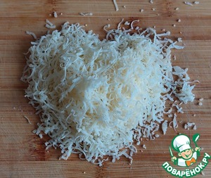 Яйца заранее отварить, почистить, натереть на мелкой тёрке и отправить вместе с ветчиной в салатник.