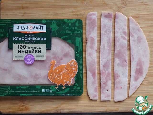 Ветчину ТМ "Индилайт" разрезать на полоски.