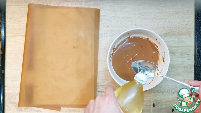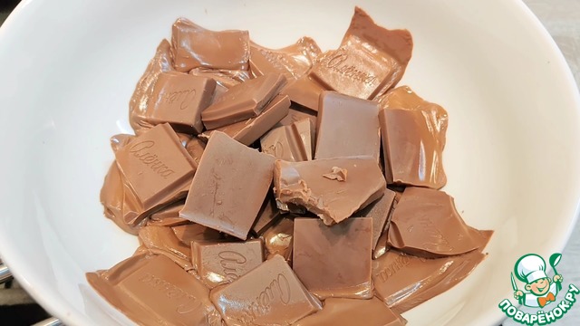 Топим шоколад на водяной бане либо импульсами по 10 секунд в микроволновке, периодически помешиваем, чтобы не подгорело.