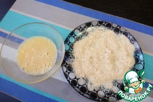 Пока подготовить разболтанное яйцо и панировочные сухари.