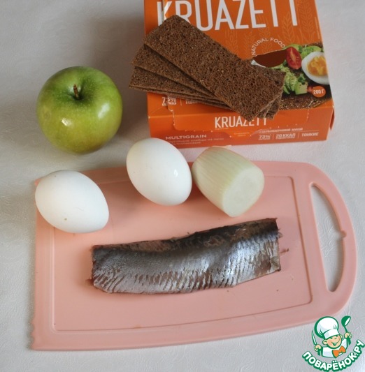 Ингредиенты для «Хлебцы с сельдью, яблоком и плавленым сыром»: