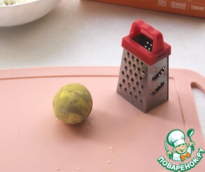 Оставленный желток натрите на терке, он понадобится для посыпки хлебцев.