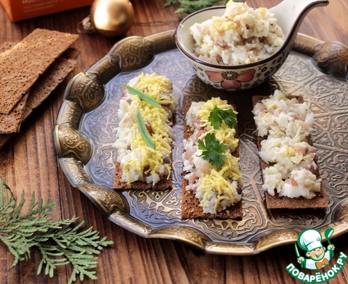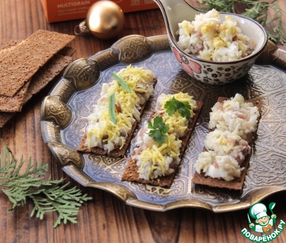 Хлебцы с сельдью, яблоком и плавленым сыром